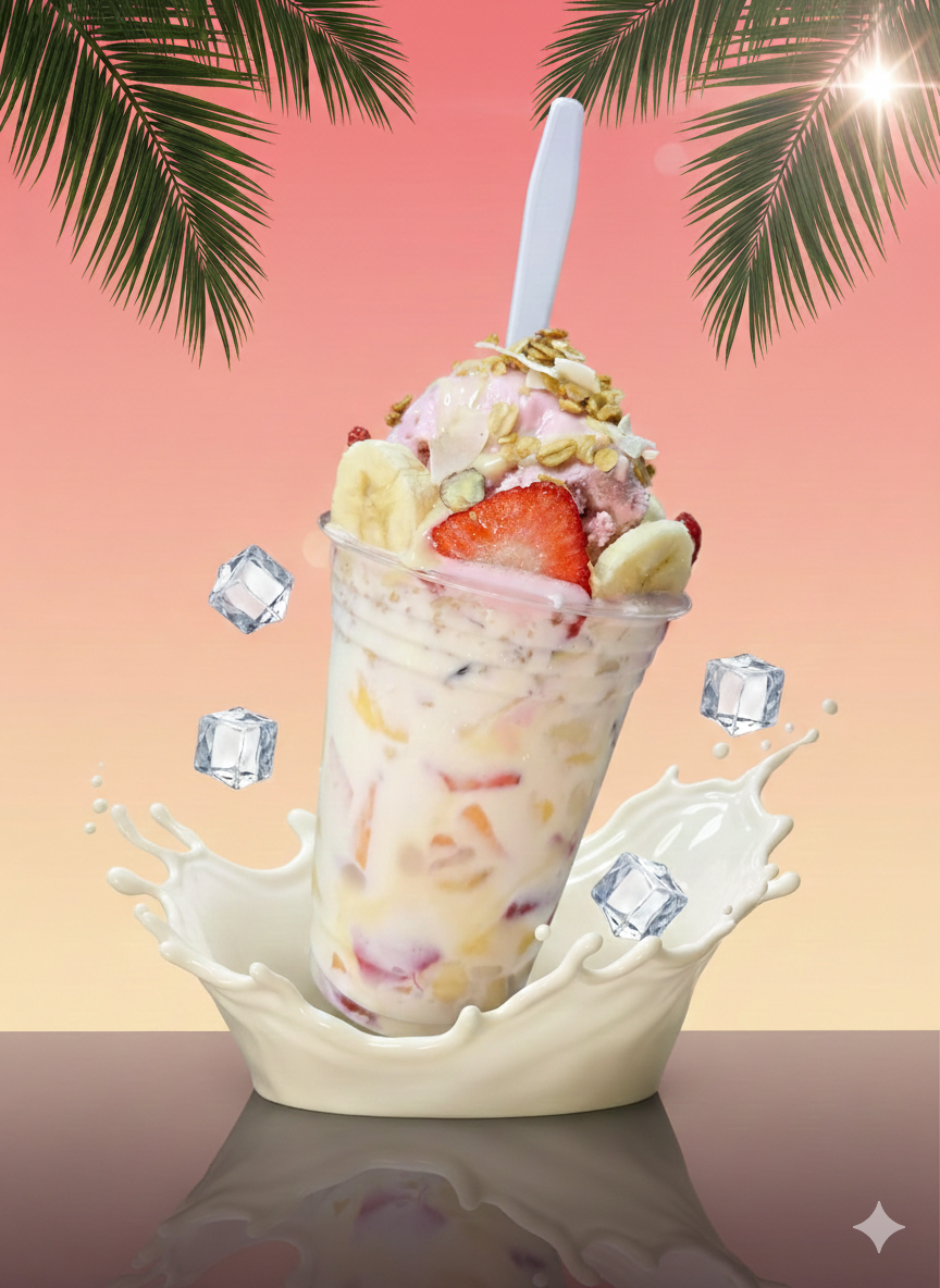 fresa con crema y platano